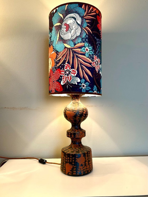 Un eccezionale oggetto da collezione della metà del secolo scorso: questa rara base per lampada proviene da Carstens Tönnieshof, uno dei più rinomati produttori di ceramiche della Germania occidentale degli anni Sessanta. Il famoso decoro Ankara è stato disegnato da Helmut Scholtis nel 1964 ed è uno degli smalti simbolo dell'epoca delle ceramiche della Germania Ovest. La versione qui proposta in terracotta/marrone scuro con tecnica a cera è particolarmente rara.