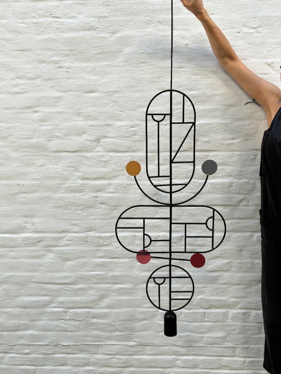 Il materiale è principalmente acciaio verniciato a polvere in nero semi-opaco con dettagli in vernice poliestere dai toni caldi. Le parti si muovono indipendentemente l'una dall'altra; anche il cavo di sospensione può essere regolato a seconda delle esigenze.