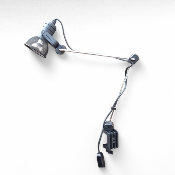 Lampada a morsetto dal design postmoderno, Näve, Germania, anni '80. Altezza massima 65 cm, larghezza 20 cm, profondità 8 cm. Usata in buone condizioni (vedi foto). Funzionante.