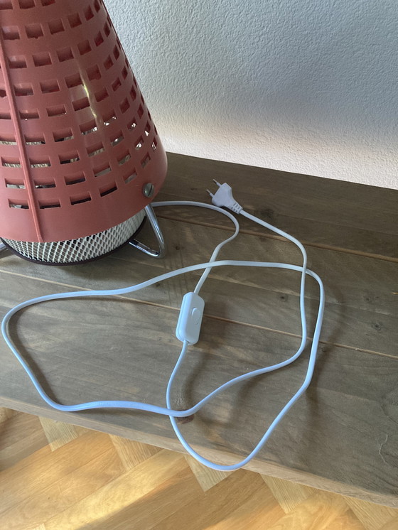 Lampada vintage unica del produttore tedesco Ostra Elektronik GMBH (chiuso nel 1980). Questa risale agli anni '60, quando trasse ispirazione dai viaggi spaziali, da cui il design che ricorda un razzo o uno Sputnik. La luce filtra magnificamente attraverso i fori nella parte superiore in plastica e nella base in metallo bianco. Anche le tre gambe cromate le conferiscono un autentico look vintage. La lampada presenta lievi segni di usura, ma è in buone condizioni e completa. Viene fornita con un cavo e un interruttore nuovi. Ha un portalampada standard piccolo. Altezza circa 45 cm. Diametro circa 26 cm.