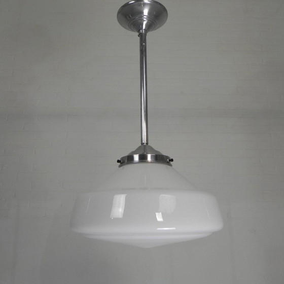 Lampada a sospensione Art Déco con paralume in vetro bianco, anni '30