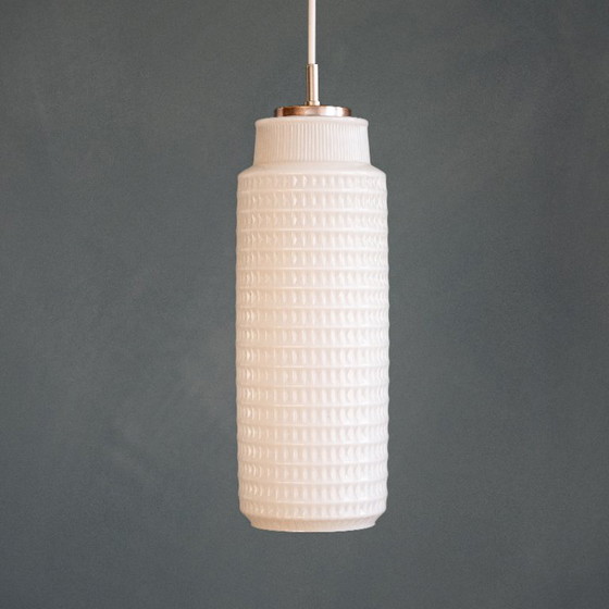 Lampada a sospensione cilindrica in vetro opalino di Peill & Putzler