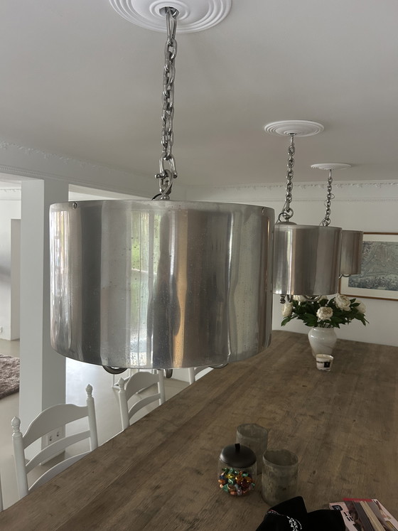 Aggiungete un tocco di modernità ai vostri interni con queste lampade a sospensione con paralume cilindrico color argento. Perfette sopra il tavolo da pranzo, queste lampade uniscono stile e funzionalità in modo impeccabile. Il paralume in metallo conferisce un look industriale, mentre la sospensione a catena aggiunge un tocco grintoso.