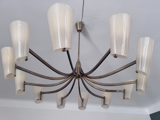 Questa straordinaria lampada a sospensione ispirata allo Sputnik dona un tocco di modernità di metà secolo alla tua casa. Con i suoi bracci eleganti e sinuosi e i raffinati paralumi in vetro bianco, diventerà il punto focale di qualsiasi ambiente.
