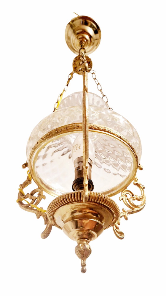 Lampada a sospensione d'epoca in ottone e vetro - Stile classico francese - Anni '60