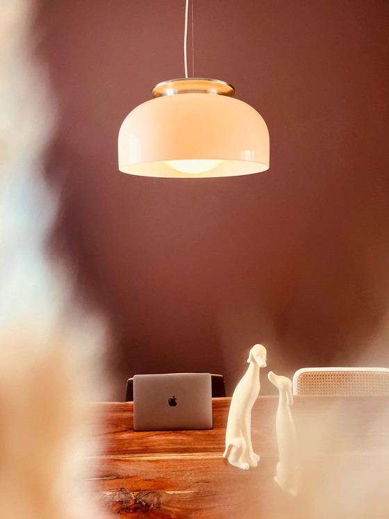 Uno dei più grandi designer italiani, Luigi Massoni, progettò questa lampada per Guzzini intorno agli anni '60. Questa lampada di design italiana Guzzini è realizzata in plexiglass bianco stampato con base chiusa, in modo che la luce venga diffusa senza che la sorgente luminosa sia visibile direttamente. Molto suggestiva 😍