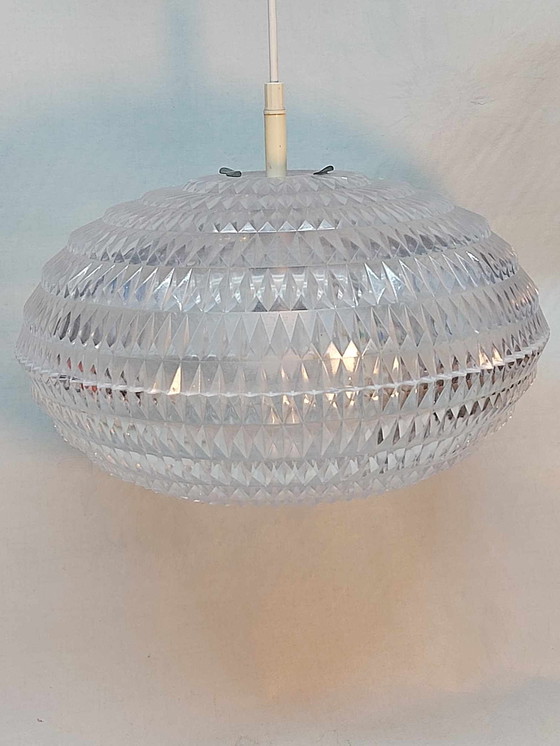 La lampada Space Age "Diamond" è stata progettata da Aloys Gangkofner per ERCO Germania. Paralume in acrilico del 1970 circa. Attacco lampada normale.