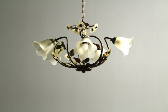 Lampada a sospensione floreale vintage di W.Müller-München, anni '80