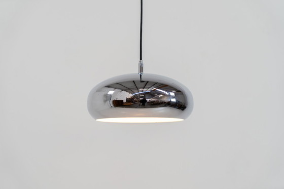 Lampada a sospensione cromata di Richard Carruthers per Ateljé Lyktan (Svezia, anni '70).