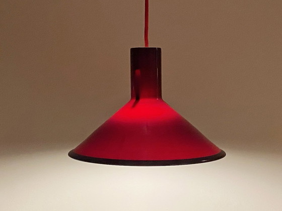 Vendo una bellissima lampada a sospensione Holmegaard, disegnata da Michael Bang. Design: Michael Bang Produttore: Holmegaard, Made in Denmark Modello: Lampada a sospensione P&T con attacco E27 Colore: Rosso, interno bianco Dimensioni: Diametro 31 cm, cavo tessile 180 cm Materiale: Vetro Condizioni: Con lievi segni di usura Con cavo tessile rosso/rosso scuro (altri colori di cavo tessile disponibili su richiesta), nuovo rosone e serracavo. Venduta senza sorgente luminosa Condizioni: Ottime condizioni Prezzo per una lampada a sospensione P&T. Altre disponibili!