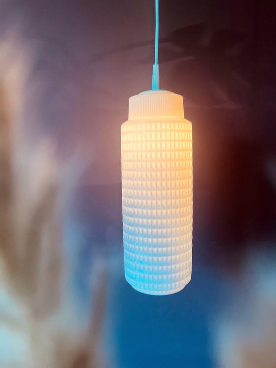 Questa lampada Peill & Putzler White Pearl è davvero unica, con la sua splendida forma rotonda a tubo in vetro satinato. Rifinita con un motivo a cubo di vetro.