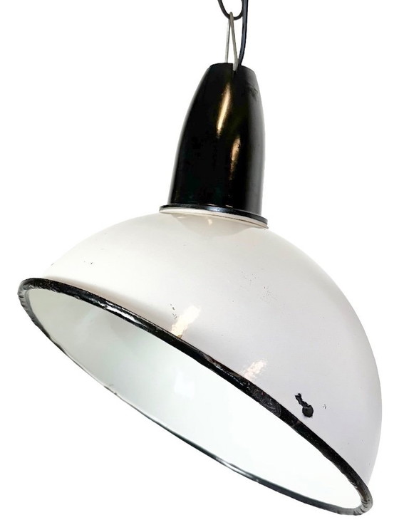 Lampada a sospensione smaltata bianca industriale sovietica, anni '60