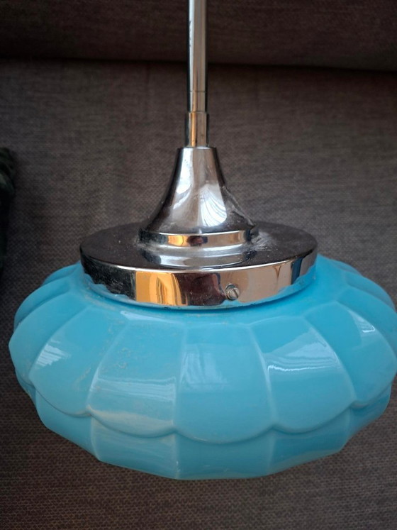 Lampada a sospensione vintage Art Déco con vetro blu