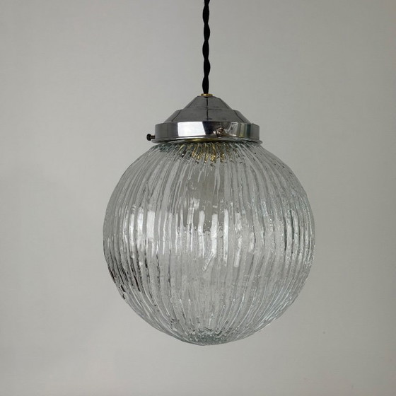 Splendida lampada a sospensione Art Déco in vetro spesso. Luce soffusa.