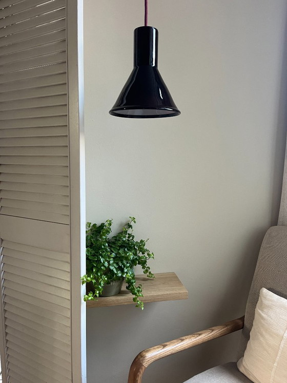 Parole chiave: holmegaard p&t michael bang lampada a sospensione piccola melanzana viola vetro soffiato a mano design scandinavo design danese illuminazione vintage illuminazione di metà secolo lampada in vetro design nordico
