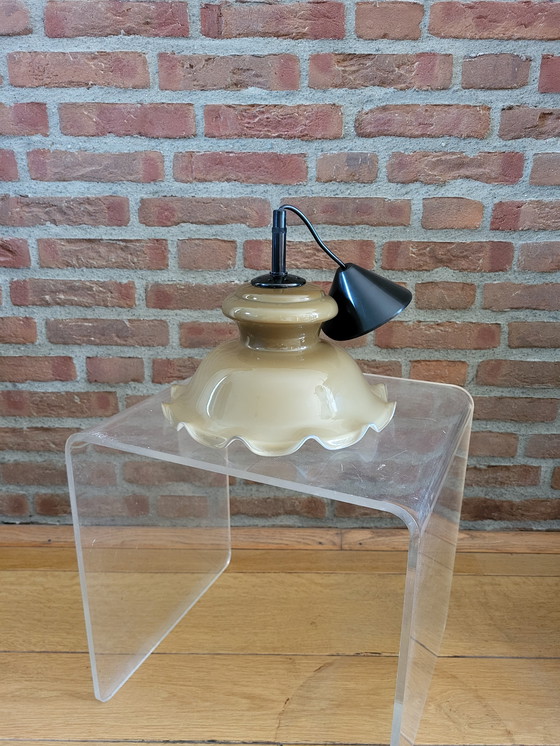 Lampada a sospensione vintage Opaline con pieghe in massiccio marrone
