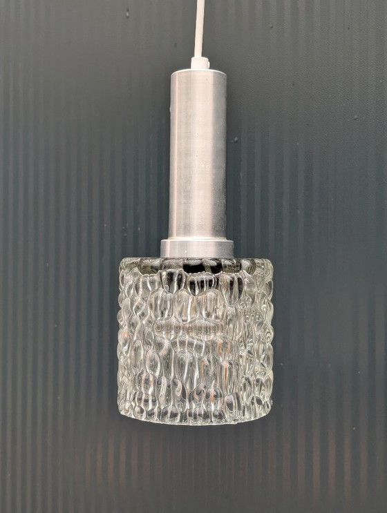 Questa lampada a sospensione vintage in vetro ghiacciato con base in alluminio è una splendida aggiunta a qualsiasi interno. L'esclusivo design in vetro ghiacciato crea un accattivante gioco di luce, donando a ogni ambiente un'atmosfera calda e accogliente. La combinazione di vetro e alluminio crea un look senza tempo, allo stesso tempo moderno e classico.