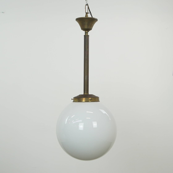 Lampada a sospensione/soffitto vintage a forma di sfera di vetro realizzata in vetro opalino in stile Art Déco