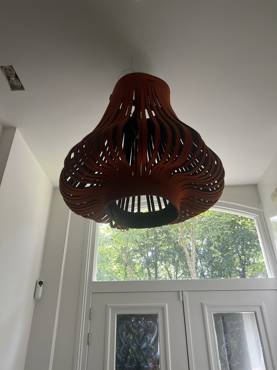 È una moderna lampada a sospensione acustica realizzata in feltro, progettata per migliorare sia l'estetica che l'acustica di una stanza. Il suo design unico è caratterizzato da un vivace colore arancione con accenti grigi, che crea un fascino visivo di grande impatto. La lampada è realizzata con materiali tessili di alta qualità, che garantiscono durata e stile. Perfetta per aggiungere un tocco di moderna eleganza a qualsiasi spazio.