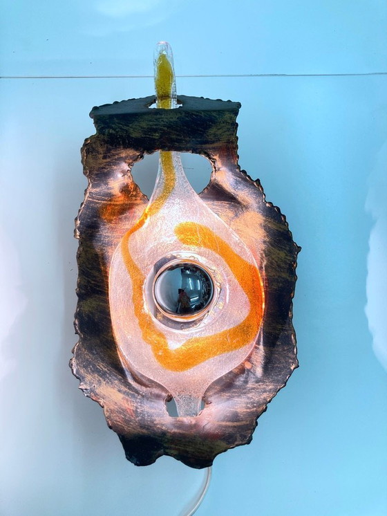 Lampada da parete brutalista in metallo e vetro design anni '60-'70