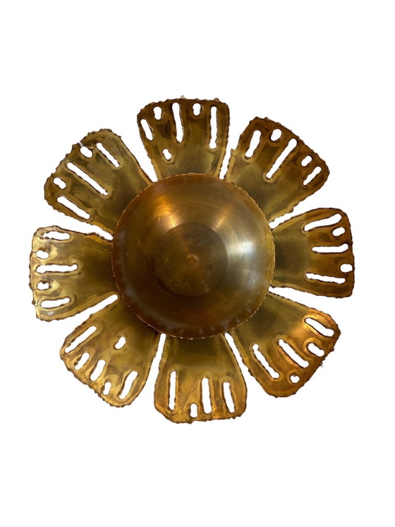 Illumina il tuo spazio con questa splendida lampada da parete in ottone del famoso designer Svend Aage Holm Sorensen, realizzata in Danimarca nel 1960. Questo pezzo rende omaggio al design moderno di metà secolo, con un accattivante motivo floreale che aggiunge un tocco di eleganza a qualsiasi ambiente.