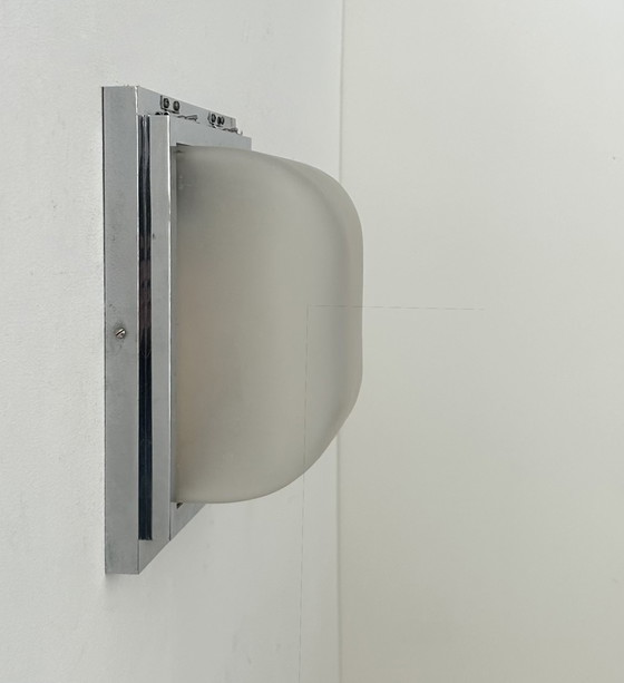 Lampada da parete modernista, metallo cromato e vetro sabbiato, Francia 1930