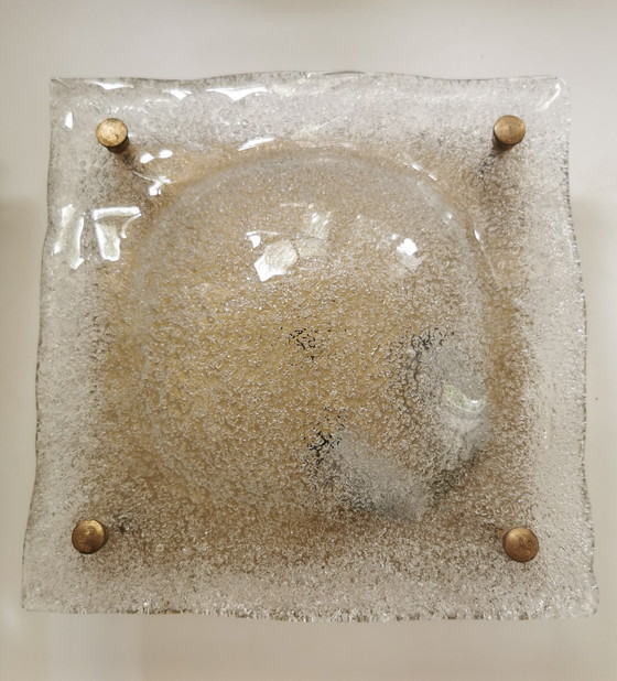 RARO! Applique quadrata di Murano del Mid-Century in vetro Graniglia, di forma ricurva su montatura in ottone, che emana una sublime luce dorata.