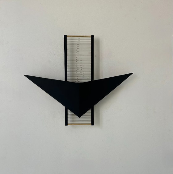 Lampada da parete postmodernista d'epoca, metallo e vetro, Francia 1980
