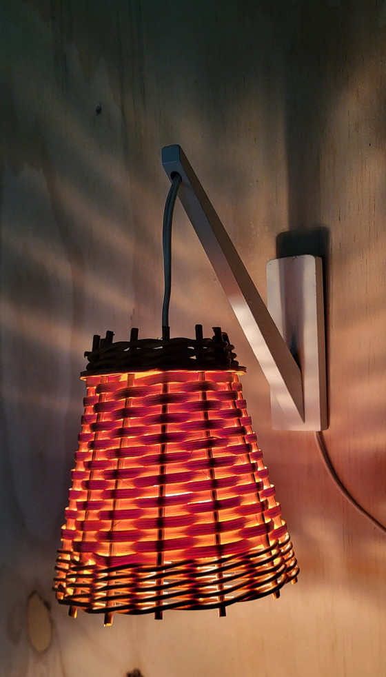 Vivi la nostalgia di un'epoca passata con questa splendida lampada da parete vintage. Il caldo bagliore della luce che filtra attraverso il paralume in rattan intrecciato crea un'atmosfera invitante e suggestiva in ogni stanza. La combinazione di materiali naturali e il design semplice rendono questa lampada un'aggiunta senza tempo ai tuoi interni. Perfetta per creare un'atmosfera calda e accogliente.