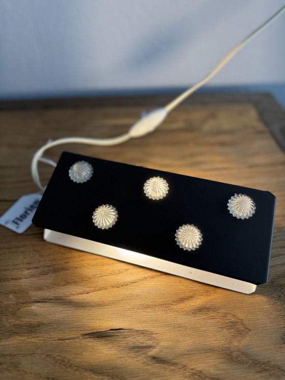Questa lampada da parete vintage degli anni '70/'80 presenta un affascinante design in metallo marrone decorato con decorazioni a forma di stella in plastica. Aggiunge un tocco nostalgico a qualsiasi stanza, perfetta per chi apprezza l'estetica retrò. La lampada è in ottime condizioni. Desideri una spina con messa a terra? Il costo aggiuntivo è di 5 €.