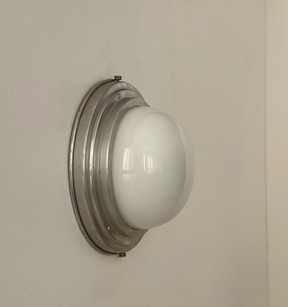 Lampada da parete vintage art déco, cromo e opalina, Francia 1930