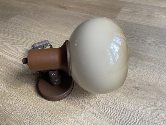 Bellissima lampada da parete vintage di Herda, la lampada a fungo. La lampada è in ottime condizioni. Il colore è marrone/beige. La lampada ha uno stoppino E27. Altezza 23 cm, larghezza 22 cm e profondità 27 cm. Il cavo è lungo 2 metri e l'interruttore si trova a 60 cm dalla lampada. La lampada presenta minimi segni di usura: graffi molto lievi. Vedi l'ultima foto.