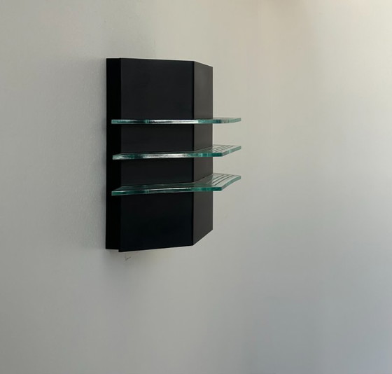 Applique in metallo nero e vetro prodotta in Francia negli anni Ottanta.