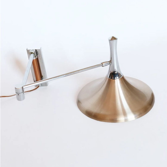 Fantastica lampada da parete di design olandese, probabilmente prodotta da Philips e progettata da Louis Kalff. La lampada in acciaio presenta un mix di elementi color argento e rame. Il paralume a "tromba" è girevole in diverse direzioni. La lampada può essere montata a parete con una piastra di montaggio e un sistema a scatto. Presenta alcuni graffi dovuti al tempo. Una splendida lampada di design! Dimensioni: Diametro paralume: 27 cm Altezza paralume: 25 cm Lunghezza totale aperta: circa 80 cm Attacco: E27 Ritiro su appuntamento. Possibilità di spedizione tramite pacco postale. Spese e rischi di spedizione sono a carico dell'acquirente. Invia un messaggio per conoscere le possibilità. Dai un'occhiata anche ai nostri altri annunci. Seguici su Instagram! @Northernvintage