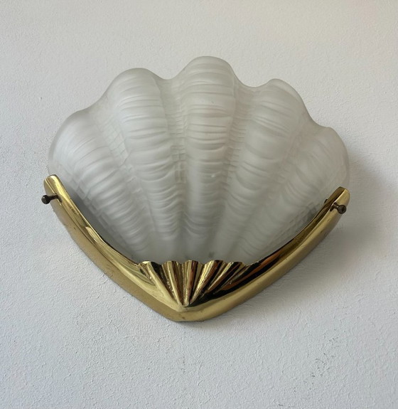 Applique in ottone e vetro sabbiato prodotta in Francia negli anni '60.