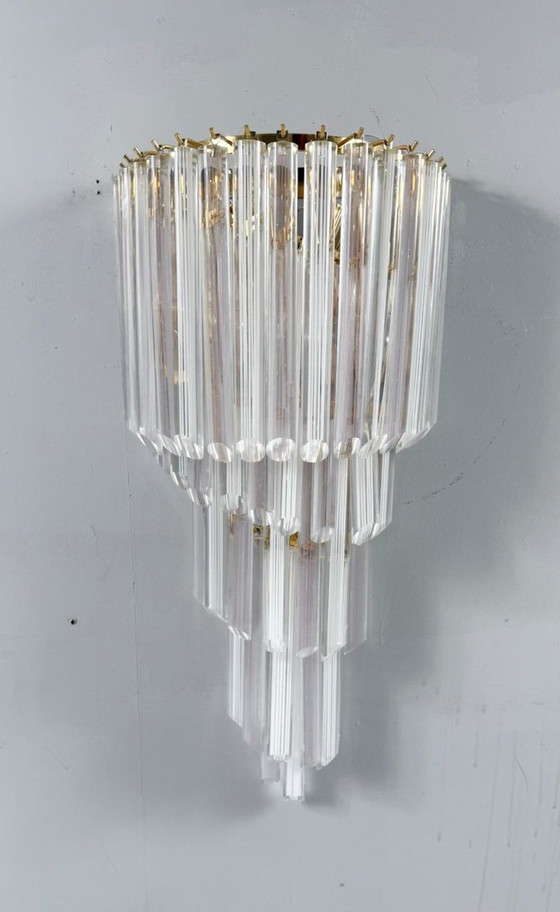 Lampada da parete/luce a cascata di metà secolo, in vetro di Murano, Italia, anni '70, struttura in metallo e vetro trasparente, composta da 41 elementi in vetro, 4 fonti luminose.