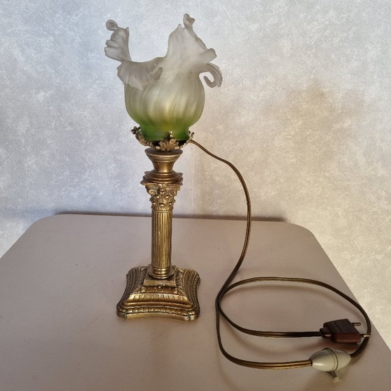 Lampada da scrivania Art Déco in opalino verde con base in bronzo