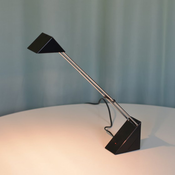 La lampada da scrivania Memphis di Vrieland è un pezzo iconico degli anni '80. Con le sue linee pulite e il design unico, questa lampada aggiunge un tocco retrò a qualsiasi ambiente di lavoro. Realizzata in metallo, presenta un'elegante combinazione di nero, bianco e cromo. Perfetta per gli appassionati di design alla ricerca di un oggetto da collezione originale.
