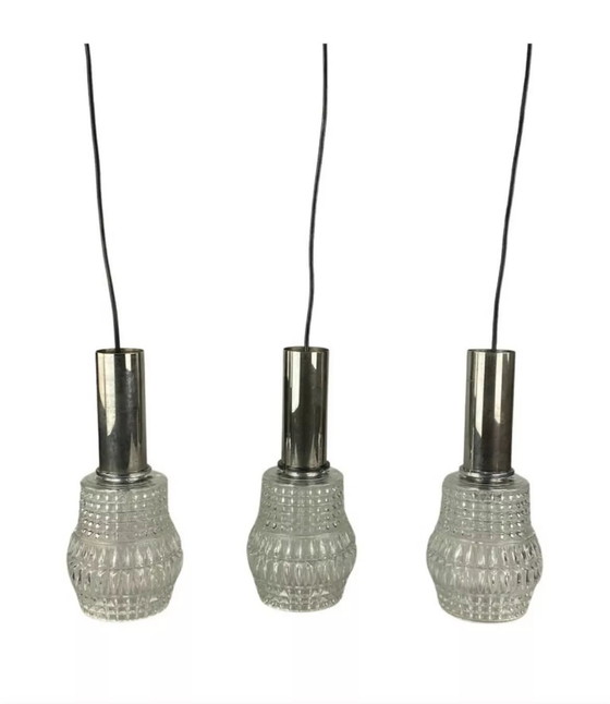 Lampada da soffitto anni '70, lampada a sospensione, lampada a cascata, vetro cromato, design spaziale