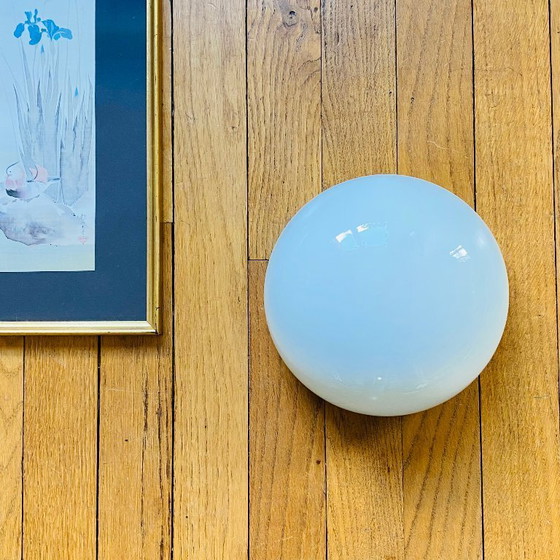 Lampada da parete o soffitto a mezzaluna, diametro 20 cm, in vetro opalino bianco, anni '60-'70
