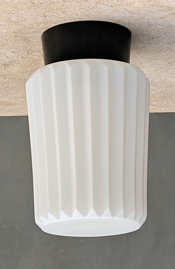 Lampada da soffitto Philips in bachelite con vetro opalino.