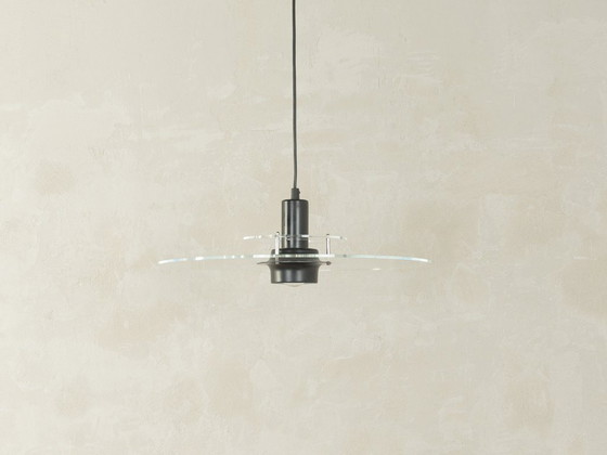 Lampada da soffitto Space Age di Ikea, risalente agli anni '80, con due pannelli in plexiglass e un rosone in plastica nera stampata a iniezione.