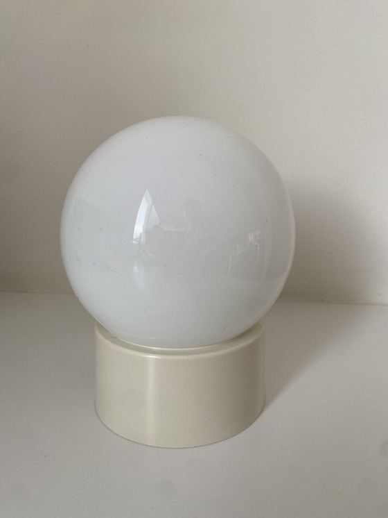 Lampada da soffitto vintage a forma di globo - lampada da parete - vetro satinato con supporto in plastica.