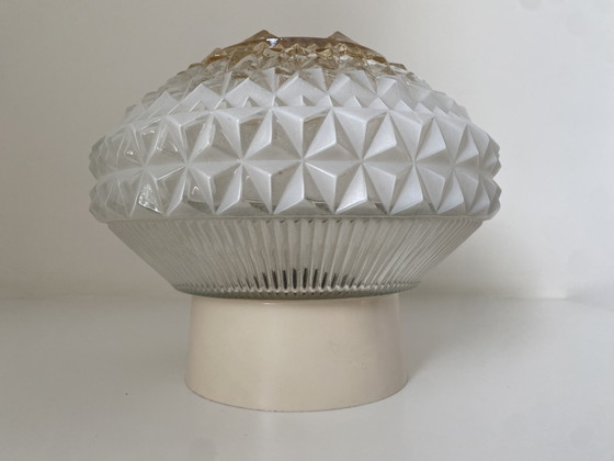 Lampada da soffitto vintage Glashütte Limburg. Anni '60/'70 con paralume in vetro ambrato.
