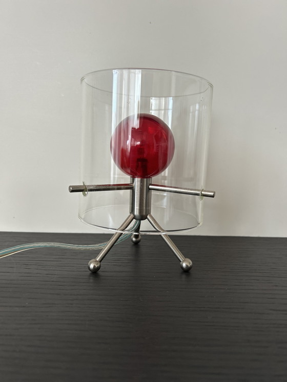 Questa moderna lampada da tavolo di design ha un design unico e giocoso, con paralume in vetro trasparente e una lampadina rossa di grande effetto. La lampada è montata su un robusto treppiede in metallo, che le conferisce un aspetto contemporaneo. È perfetta per aggiungere un tocco di moderna eleganza a qualsiasi ambiente. È dotata di un interruttore in plastica trasparente per un facile utilizzo.