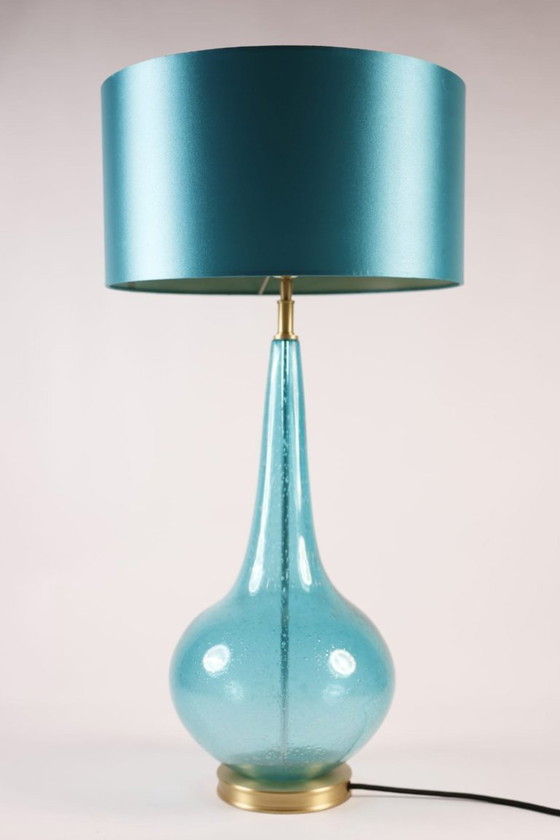 La lampada da tavolo Massaro di Eichholtz è una splendida lampada che aggiunge carattere ai vostri interni. La base in vetro soffiato color acquamarina è impreziosita da minuscole bolle d'aria, creando un effetto vibrante. La forma elegante è esaltata dal paralume e dalla base con finitura in ottone opaco, che completa l'estetica della lampada.