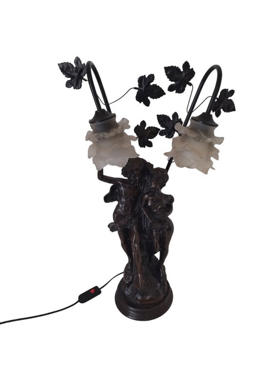 La lampada è basata su una scultura chiamata "I giovani amanti" dello scultore francese Auguste Moreau (Digione 1834 - Malesherbes 1917).