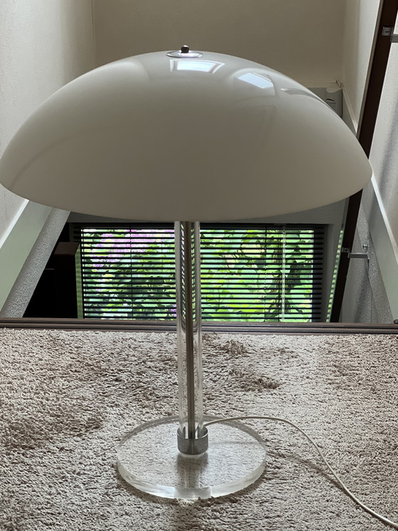 "Questa lampada da tavolo vintage Harco Loor ha un design elegante con un paralume bianco a cupola e una robusta base in metallo. L'estetica minimalista è completata dall'uso di materiali di alta qualità, che la rendono un'aggiunta elegante a qualsiasi stanza. La lampada è perfetta per creare un'atmosfera accogliente con la sua luce soffusa. Nonostante alcuni piccoli segni di usura, è in buone condizioni e perfettamente funzionante."