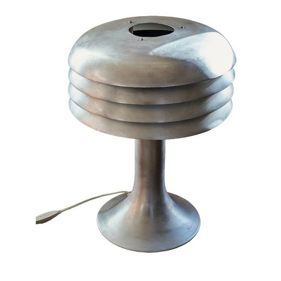 Condizioni: Eccellenti condizioni vintage. La superficie in alluminio spazzolato è ben conservata e presenta una splendida patina. Solo lievi segni di usura superficiale (lievi micrograffi) coerenti con i suoi 60 anni, che ne accentuano il carattere autentico. La lampada è perfettamente funzionante e pronta all'uso.