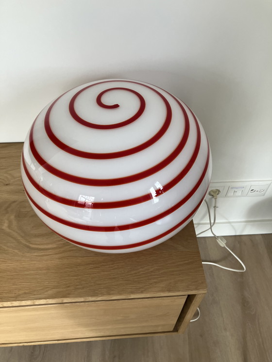 Lampada da tavolo di design italiano, utilizzabile anche come lampada da terra. La spirale rossa è dipinta a mano e non è identica a nessun'altra lampada. Il prezzo è inteso per pezzo!